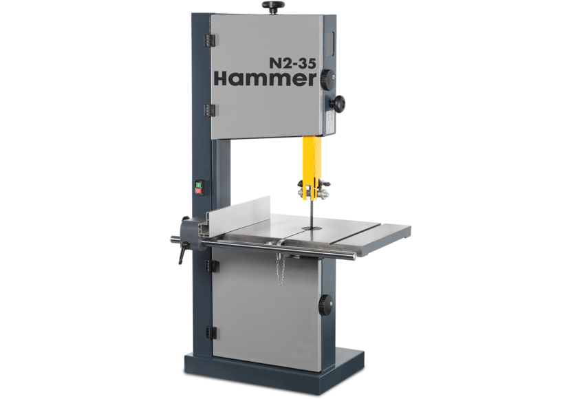 La scie à ruban Hammer N2-35 convainc avec des détails uniques dans sa classe. Une hauteur de coupe de 235 mm et un moteur performant suffisent pour les exigences importantes. La lourde table inclinable en fonte grise, les volants massifs en fonte aluminium, le guide parallèle précis ainsi que le guidage du ruban en-dessus et en-dessous de la table avec des galets arrière et latéraux à réglage fin assurent la meilleure stabilité et des résultats extraordinaires.