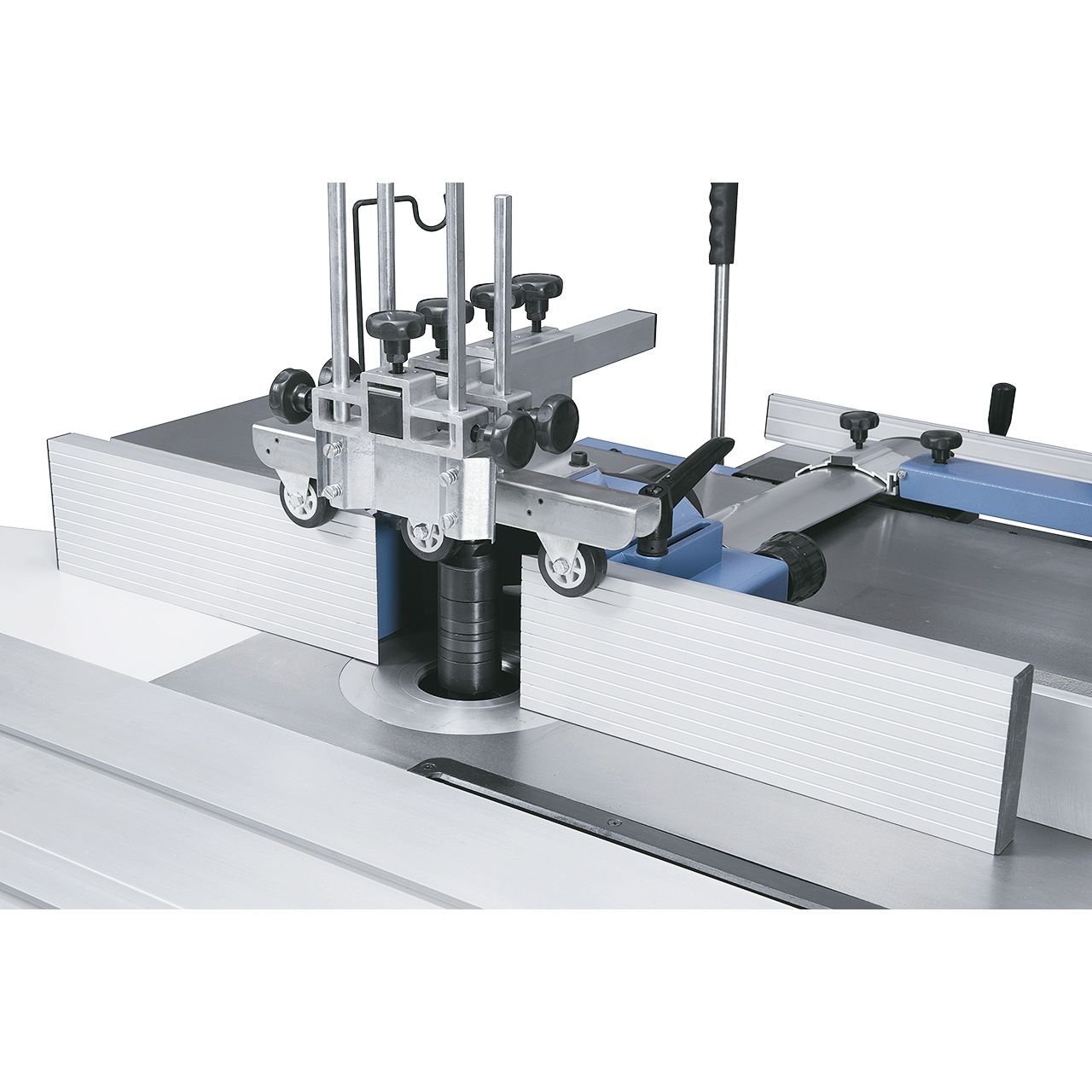 Guide télescopique extensible (jusqu’à 2260 mm), utilisable à l’avant ou à l’arrière de la table coulissante